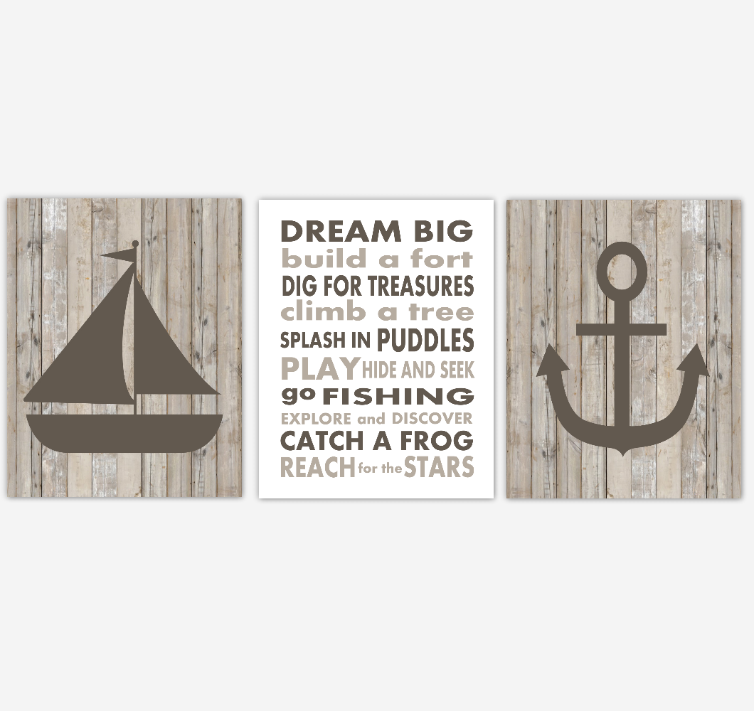 Nautical Baby Boy Nursery Wall Art Sailboat Anchor Dream Big Boy