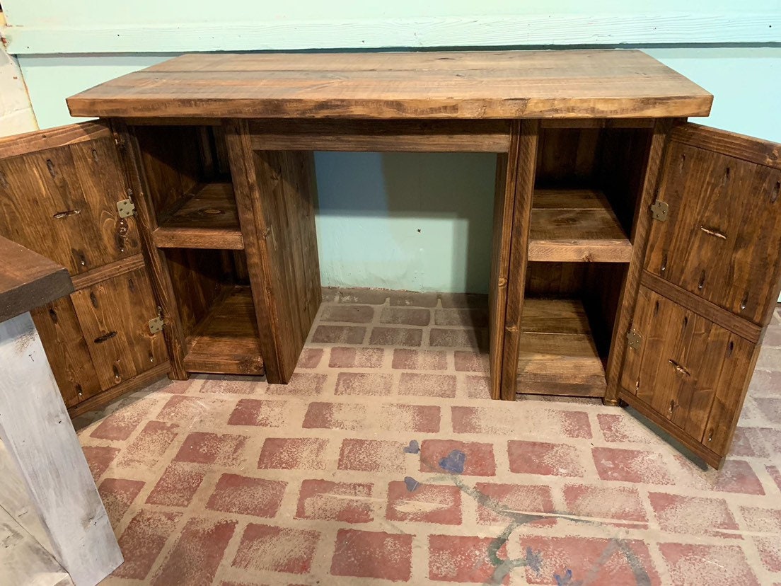 Rustic 2 Piece Executive Wood Desk And Office Storage Cabinet In