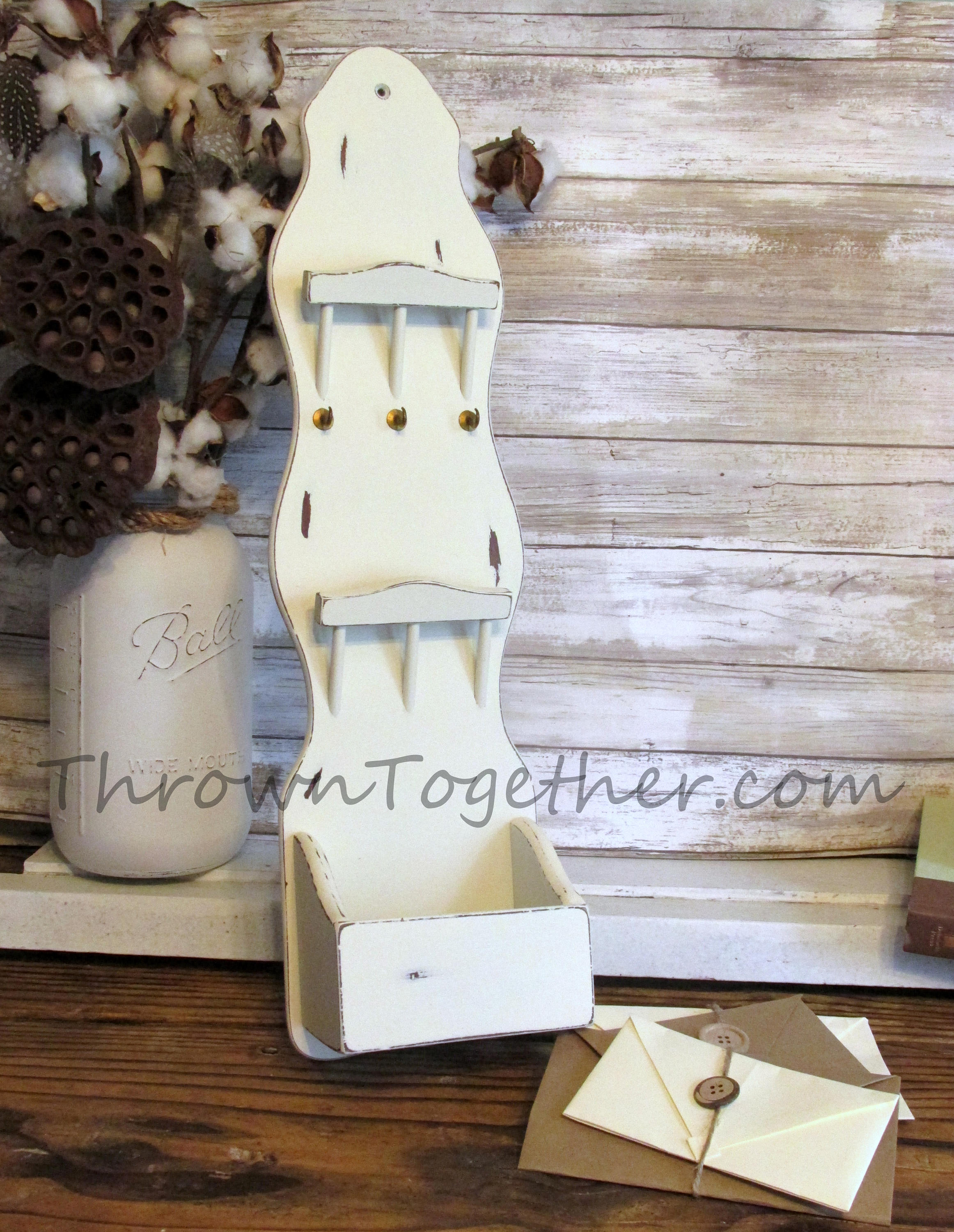 Wood Mail And Key Holder Distressed Off White Mail Organizer