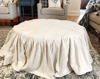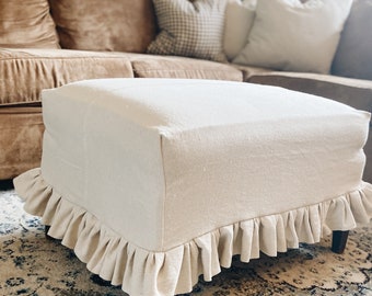 Farmhouse Ruffled Ottoman Slipcover Handmade 100 Washed