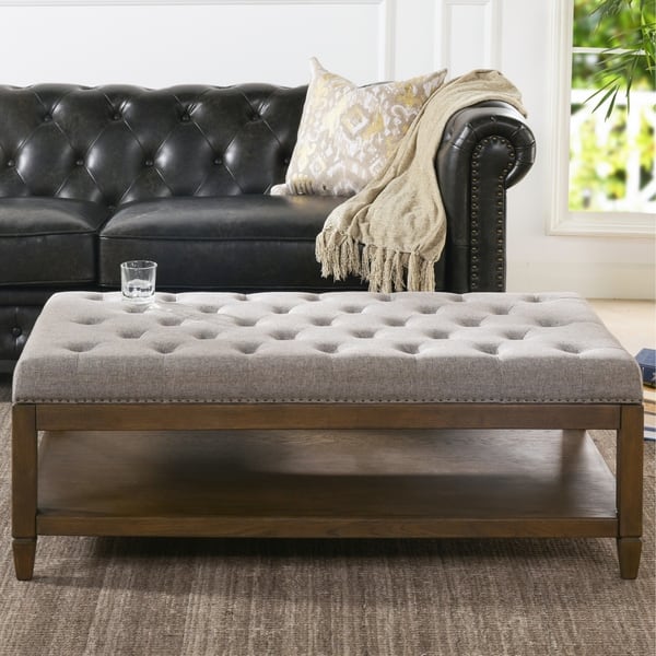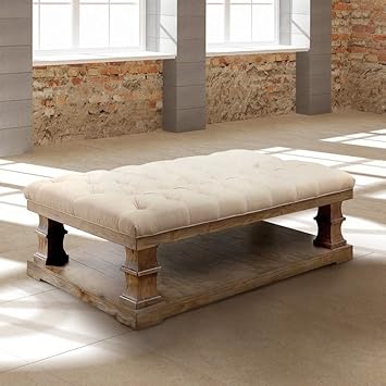 Amazon Com Furniture Of America Temecula Rustic Farmhouse Tufted Linen Coffee Table Ottoman Kitchen Dining