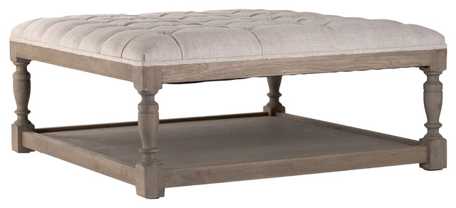 Square Tufted Ottoman Cream Natural Linen Reclaimed Oak Farmhouse Footstools And Ottomans By Hedgeapple