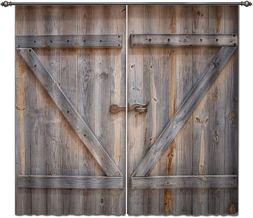 Amazon Com Lb Rustic Barn Door 3d Window Curtains For Living Room