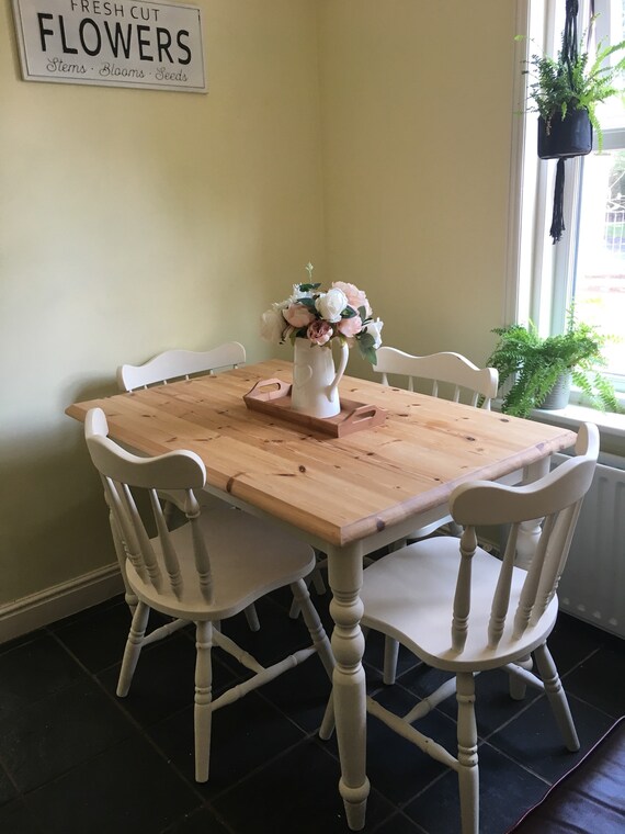 Coming Soon Farmhouse Pine Table 4 Chairs Painted Kitchen Etsy