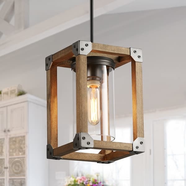 Lnc Farmhouse Mini Faux Wood Pendant Lighting With Clear Cylinder