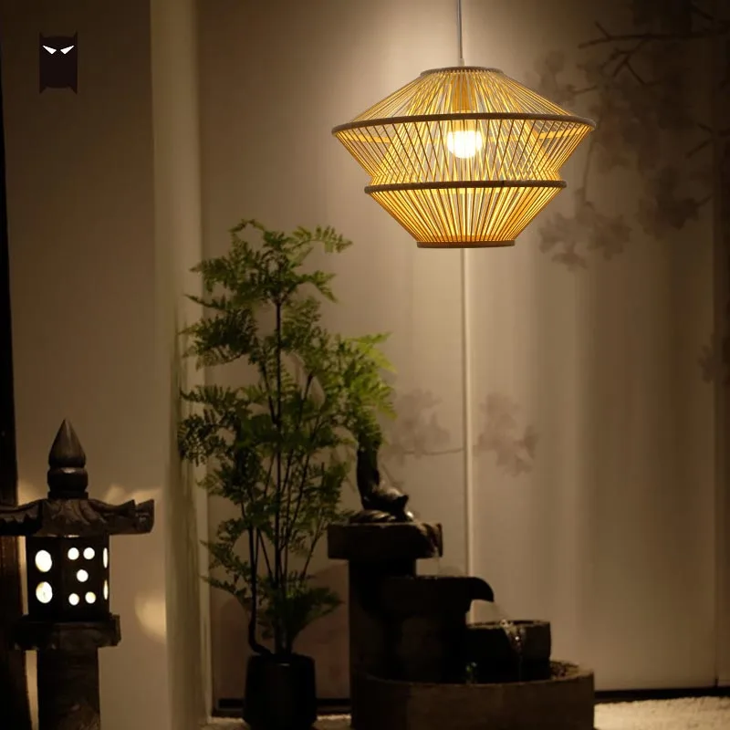 Natural Bamboo Wicker Rattan Rod Shade Pendant Light Fixture