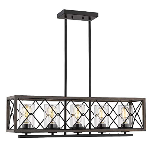 Zeyu 5 Light Kitchen Island Lighting Wood And Black Finish