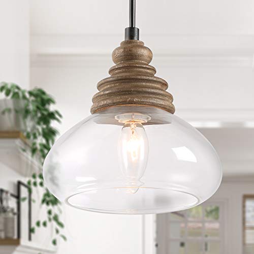 Lnc Farmhouse Mini Faux Wood Pendant Lighting With Clear Cylinder