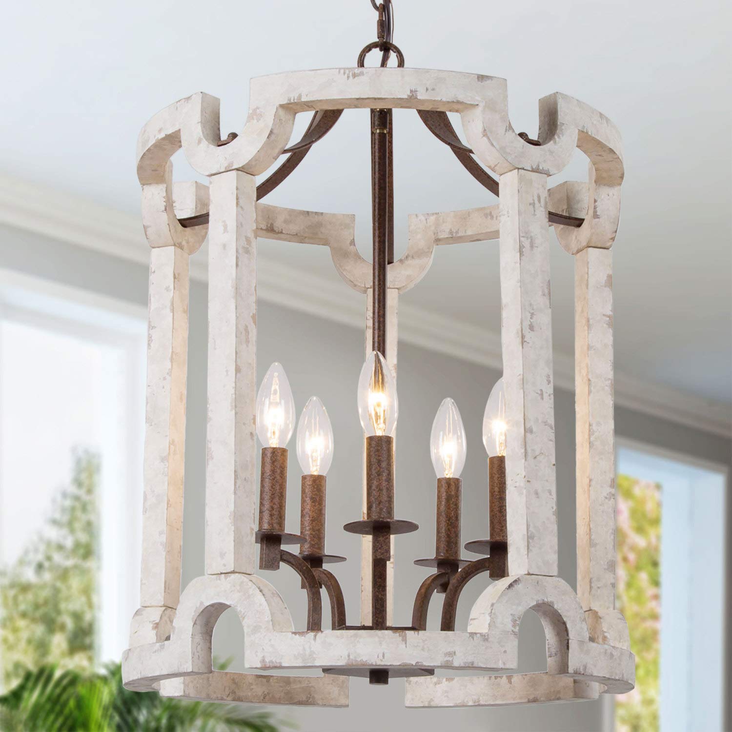 Lnc Farmhouse Pendant Lighting Fixture Rustic Wood Cage Chandelier
