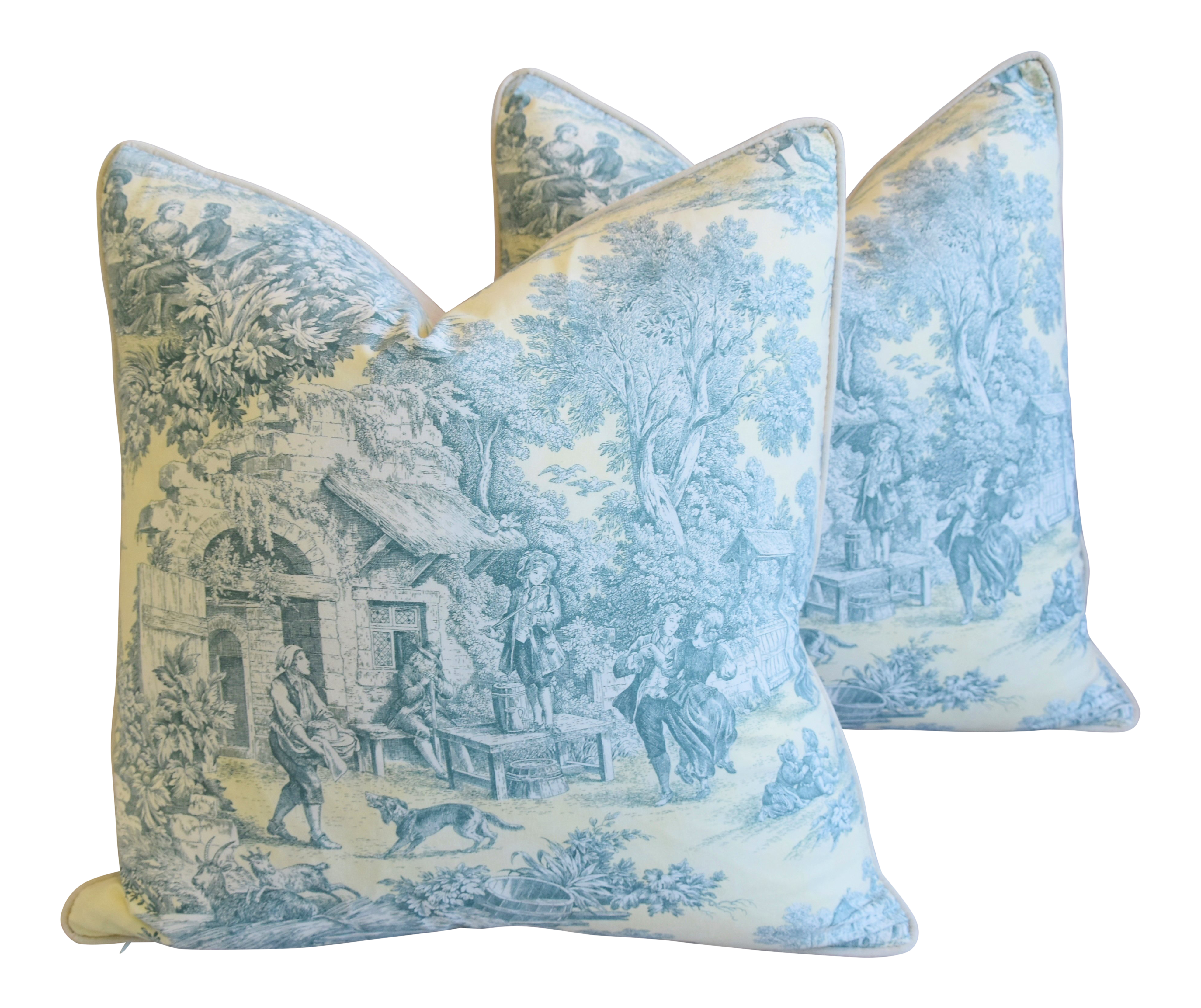 French Farmhouse Country Toile Feather Down Pillows 24 Square