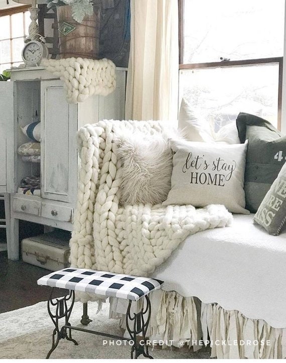 Farmhouse Pillows Let S Stay Home Farmhouse Pillow Cover Etsy