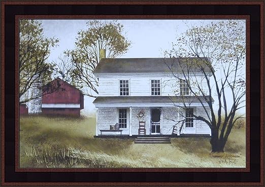 Amazon Com Home Cabin Decor Summer Afternoon By Billy Jacobs 16x22 Farmhouse Porch Rocking Chair Farm Red Barn Primitive Folk Art Framed Picture 2 Espresso Posters Prints