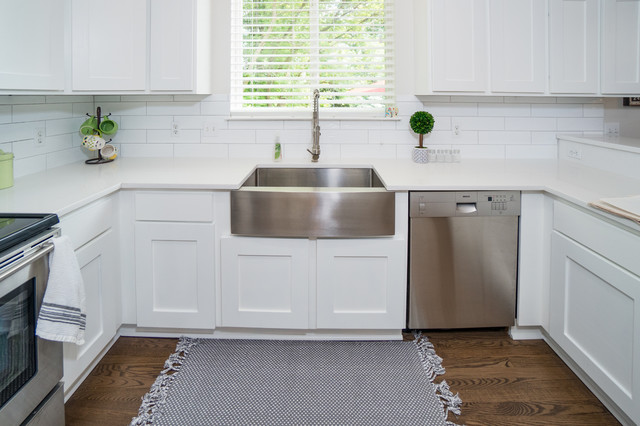 White Kitchen Stainless Steel Farmhouse Sink Quartz Countertops