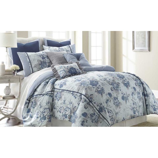 8 Piece Embellished Comforter Set Floral Farmhouse Queen