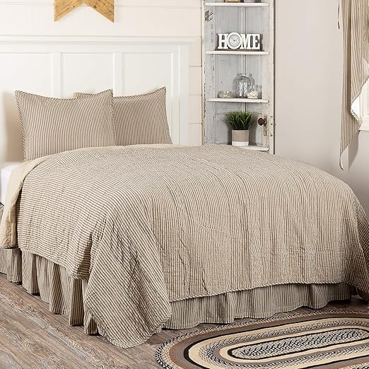 Rustic Farmhouse Ticking Stripe Quilt Set Charcoal Antique