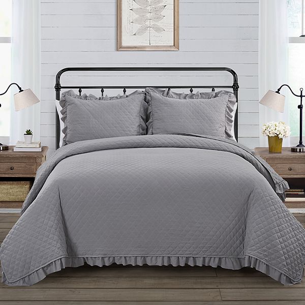 Vcny Home Farmhouse Savannah Ruffle Quilt Set Grey 3 Piece Full