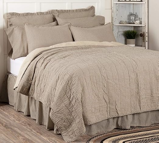 Amazon Com Vhc Brands Sawyer Mill Ticking Stripe Quilt Queen 90x90 Charcoal Grey Home Kitchen