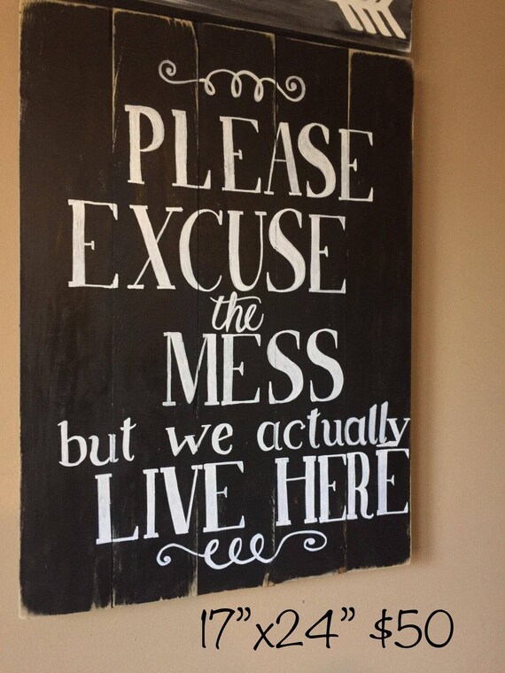 Please Excuse The Mess Rustic Wood Sign Farmhouse Quotes Etsy