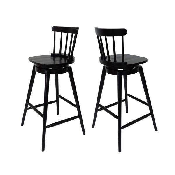 Noble House Tilbury Traditional Farmhouse 29 2 In Black Wooden Spindle Bar Stools Set Of 2 54442 The Home Depot