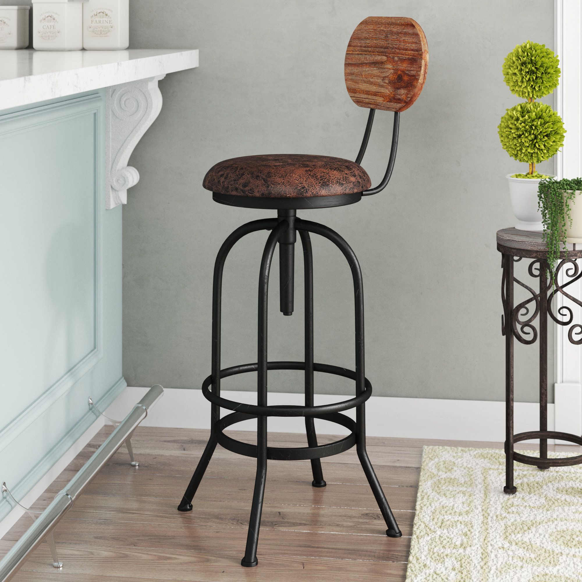 Gracie Oaks Adele Industrial Adjustable Barstool In Silver Brushed Grey With Brown Fabric Seat And Rustic Pine Back Reviews Wayfair Ca