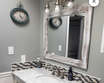 Rustic Distressed Mirror Farmhouse Mirror Wood Mirror Bathroom