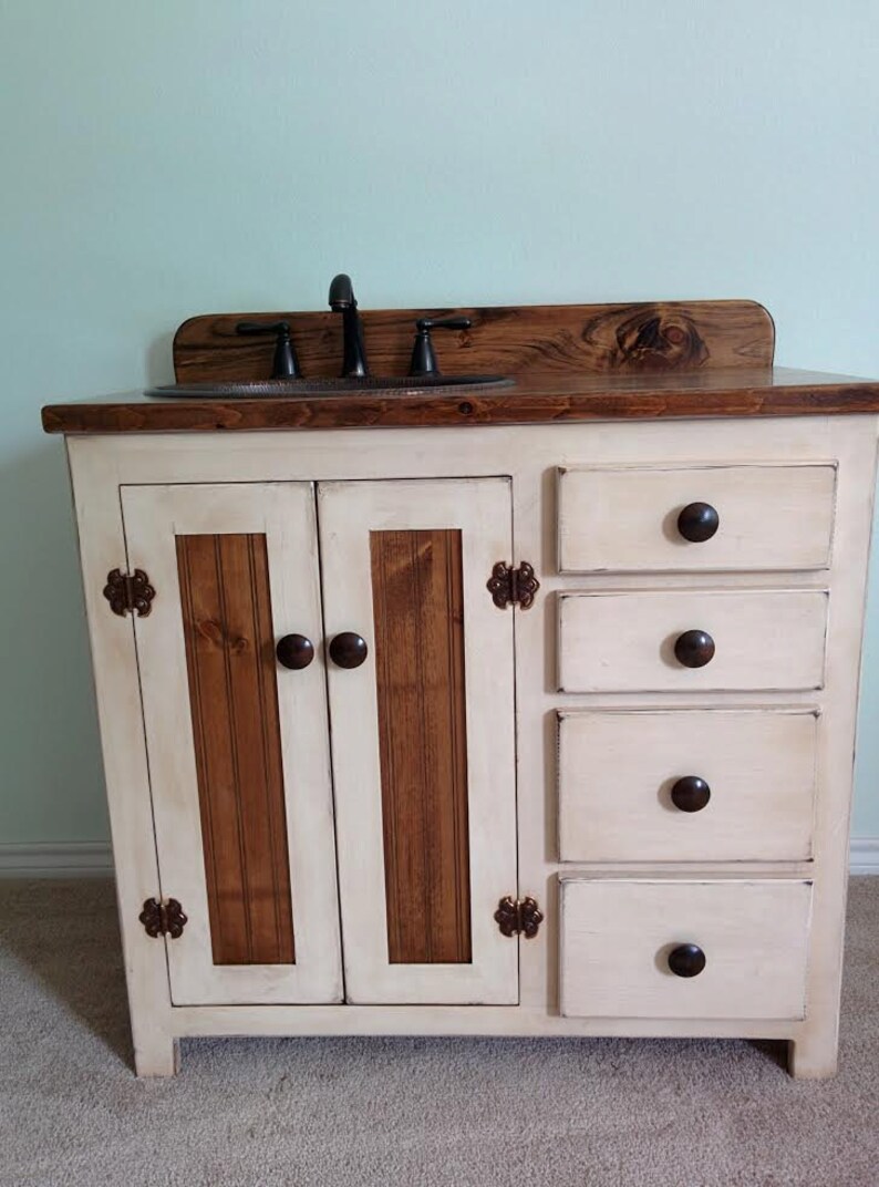 Rustic Farmhouse Vanity Copper Sink 42 Off White Etsy