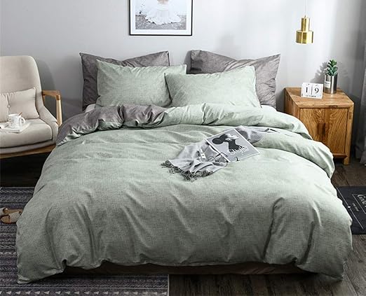 Gray Green Duvet Cover Set Queen Premium Microfiber Bedding Set