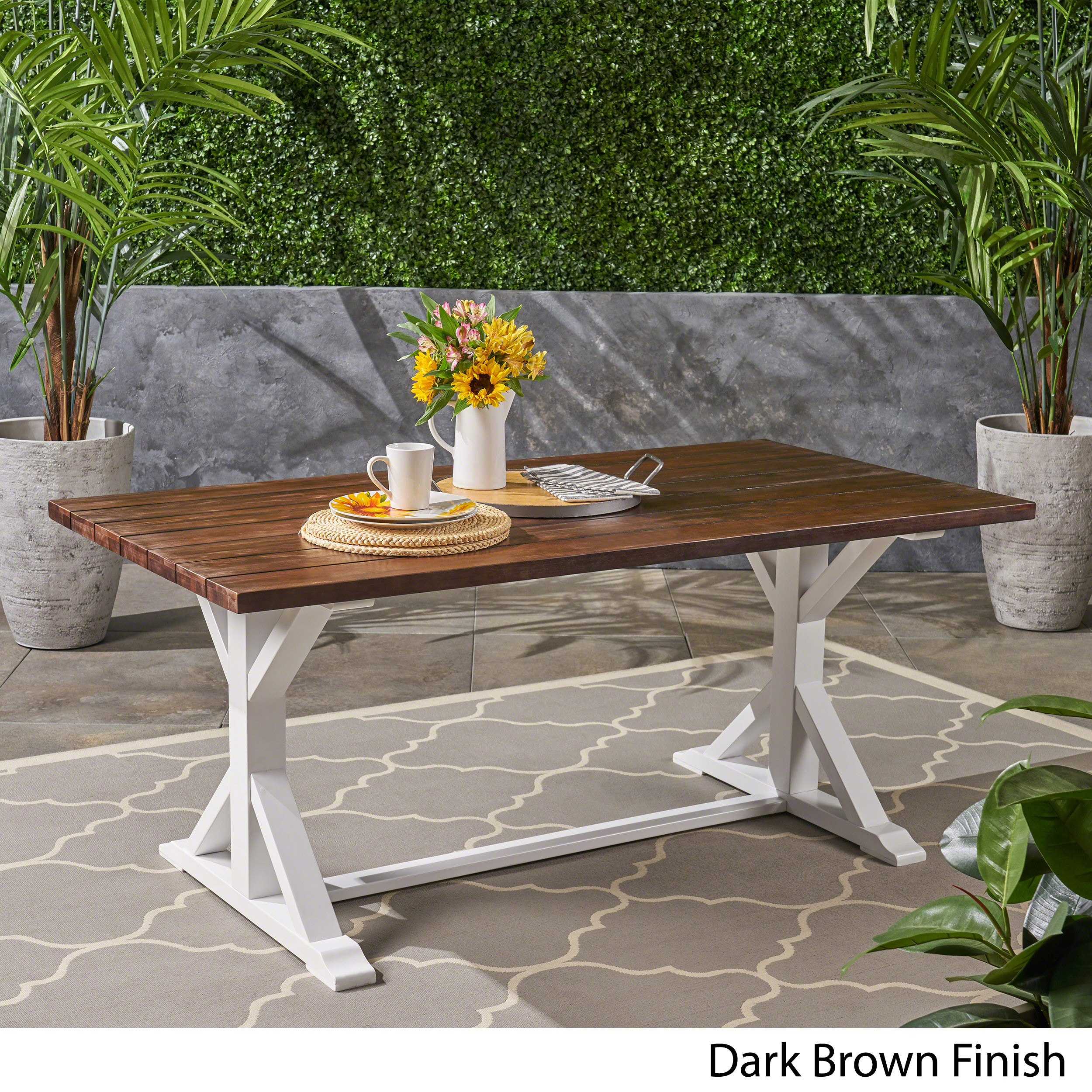 Mayo Outdoor Rustic Farmhouse Acacia Wood Dining Table Dark Brown