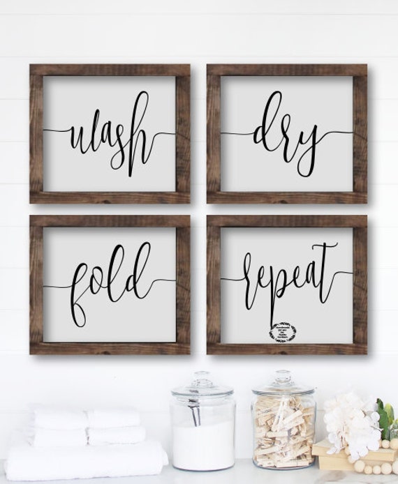 Wash Dry Fold Repeat Laundry Signs Farmhouse Laundry Room Etsy