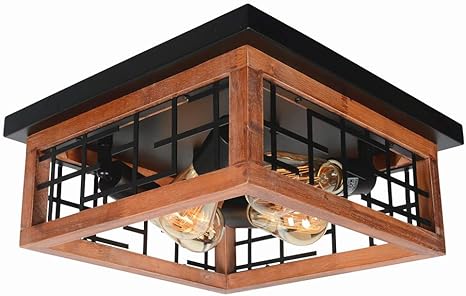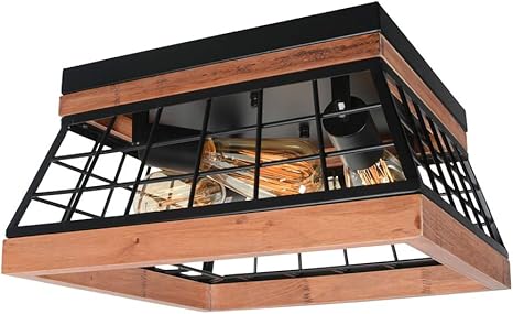 Baiwaiz Rustic Farmhouse Ceiling Lighting Square Metal And Wood