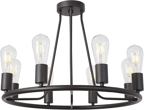 Baiwaiz Round Rustic Semi Flush Mount Light Black Metal And Wood