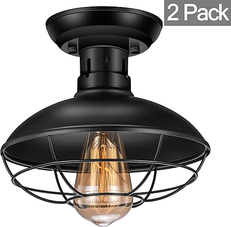 Vintage Rustic Semi Flush Mount Ceiling Light 2 Pack Industrial
