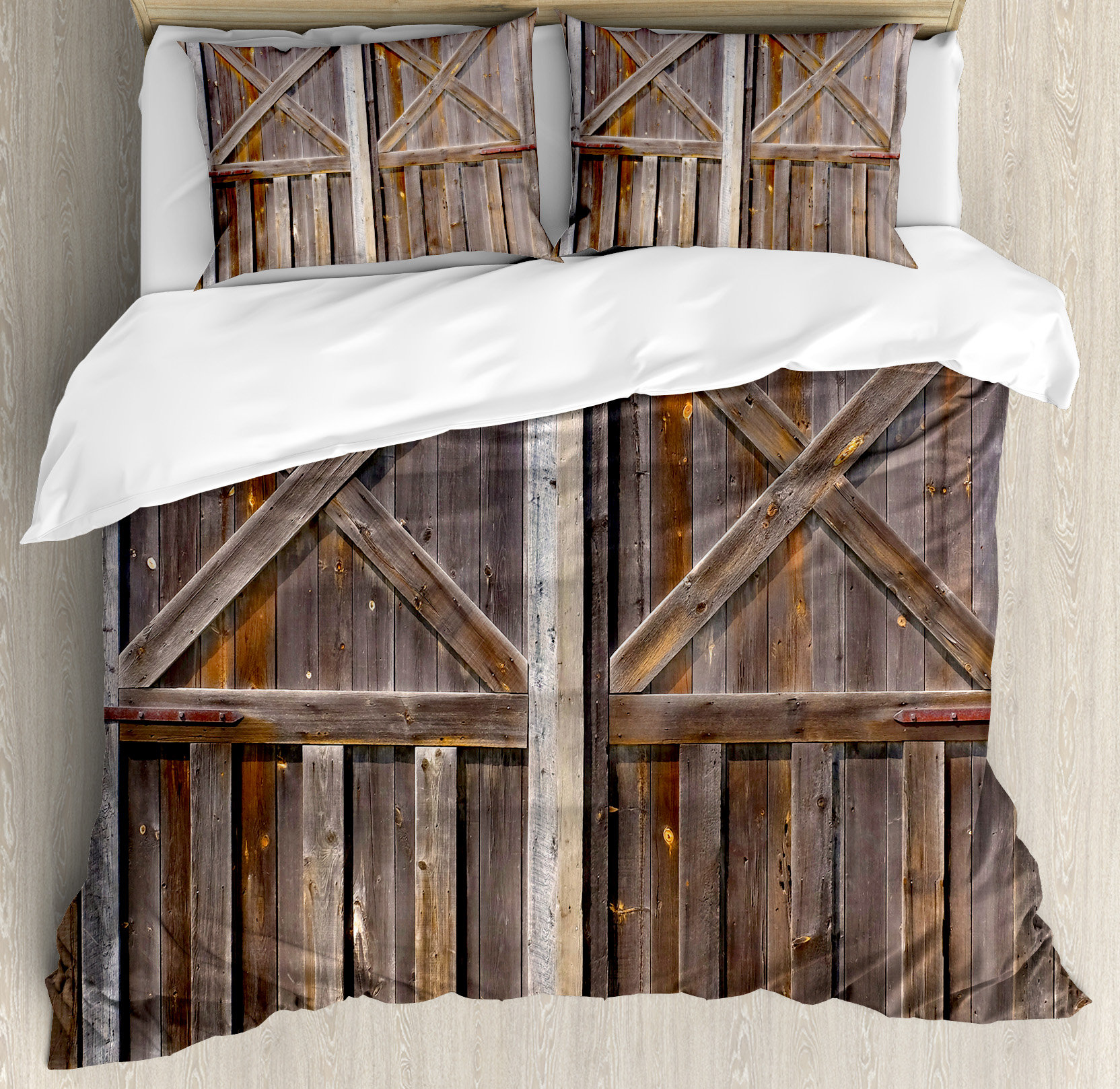 Ambesonne Rustic Old Wooden Barn Door Of Farmhouse Duvet Cover Set