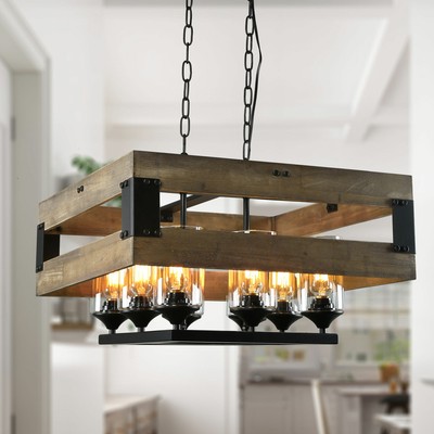Farmhouse 8 Light Wood Hanging Ceiling Pendant Fixture Kitchen