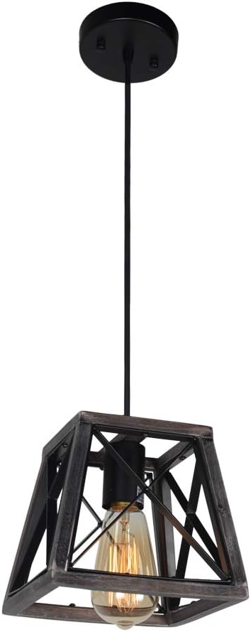 Baiwaiz Farmhouse Light Wood Rustic Kitchen Pendant Island Lighting Metal Cage Hanging Light Fixture 1 Light Edison