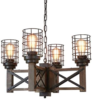 Eumyviv Wood Farmhouse Cage Rustic Chandelier Kitchen Island 4 Lights 23 9 Industrial Dinning Table Pendant Lamp
