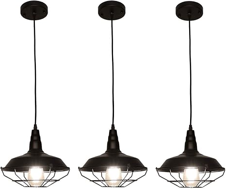 Lynpon Industrial Barn Pendant Light Rustic Hanging Lamp Black Cage Ceiling Light Fixture Kitchen Island
