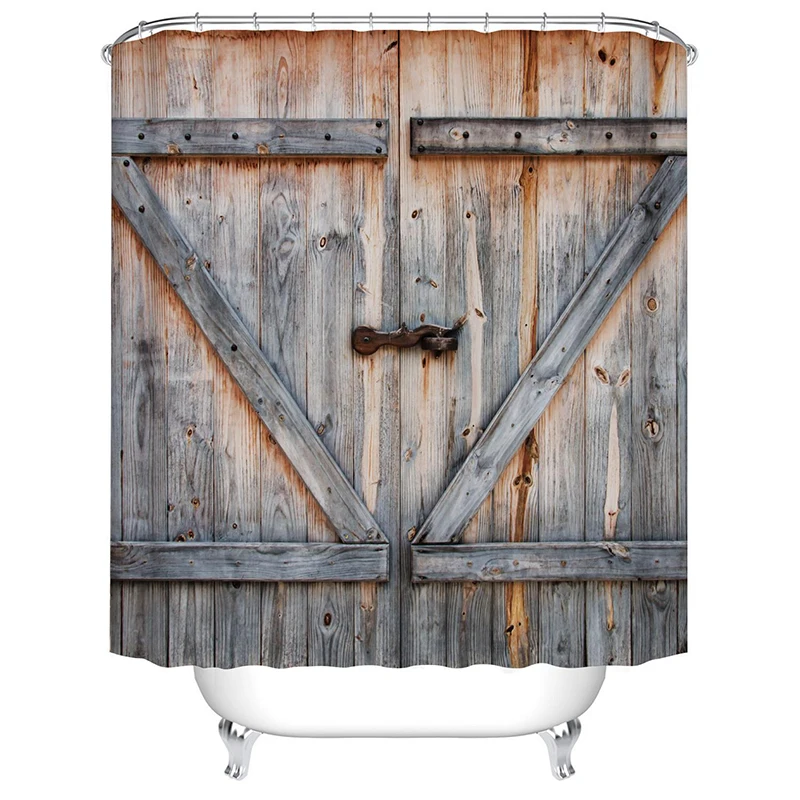 Lb Rustic Vintage Wood Barn Door Panels Shower Curtain Nature