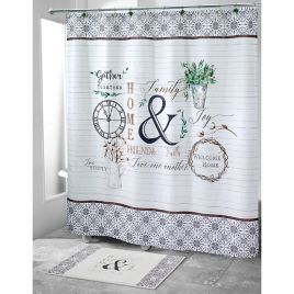 Bath Bliss Printed Polyester Black Shower White Curtains Gray