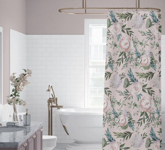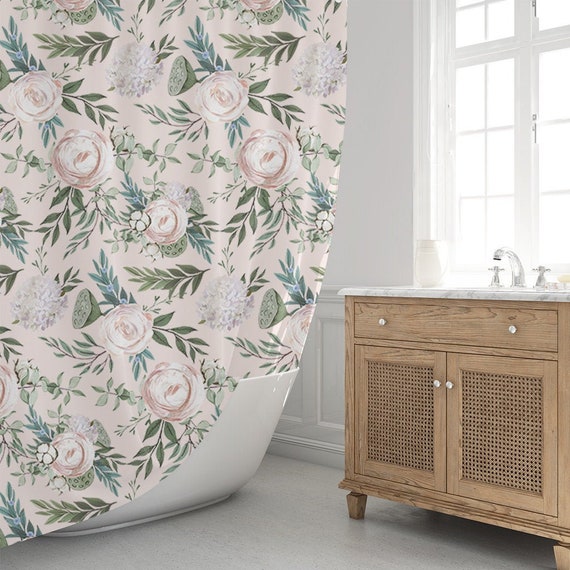 Farmhouse Shower Curtain Floral Shower Curtain Flower Peach Etsy