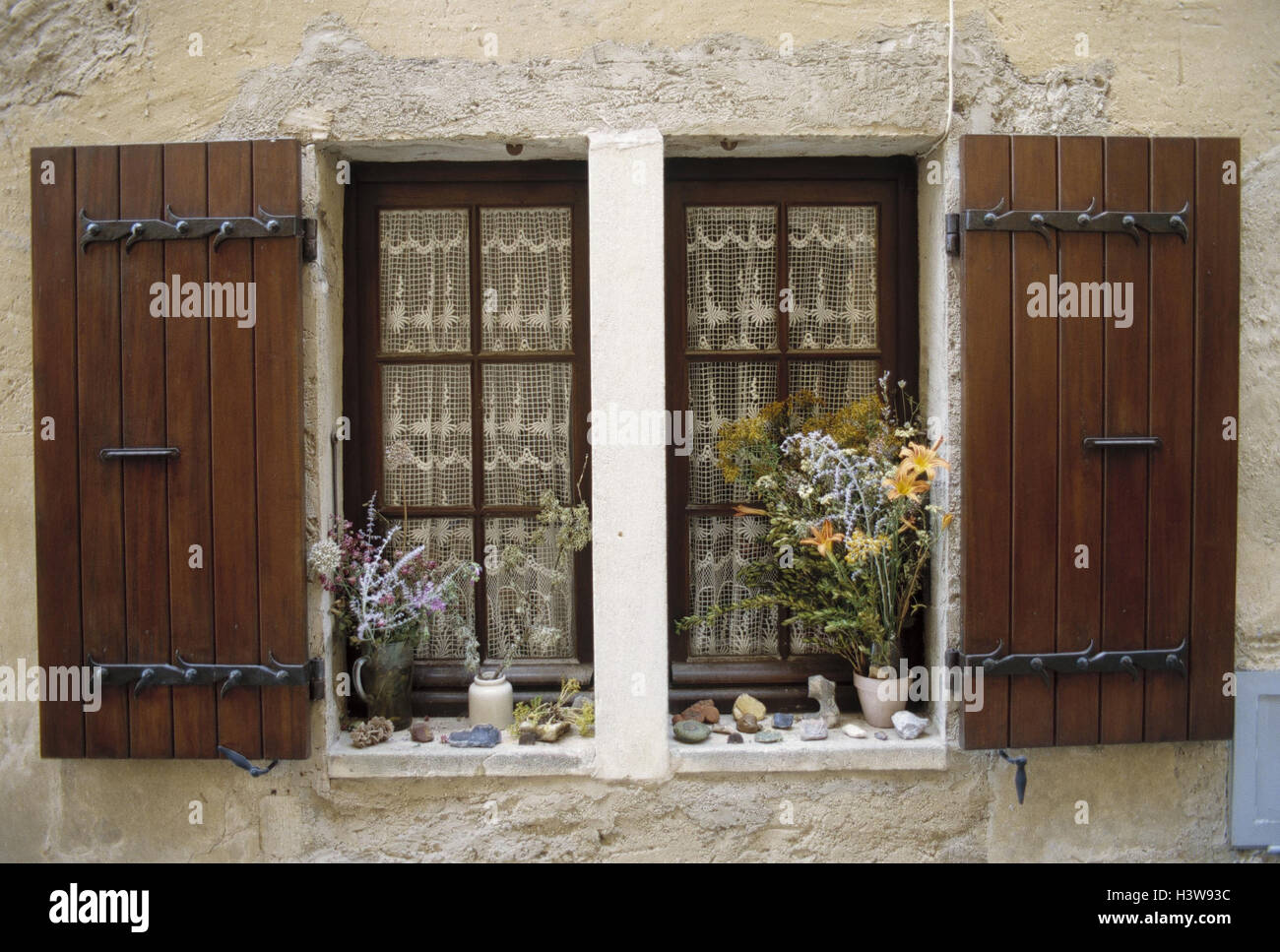 France Provence Gordes Farmhouse Detail Window Flowers Stock