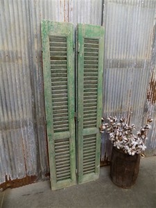 Pair Tall French Wood Shutter Farmhouse Shutters Vintage Window