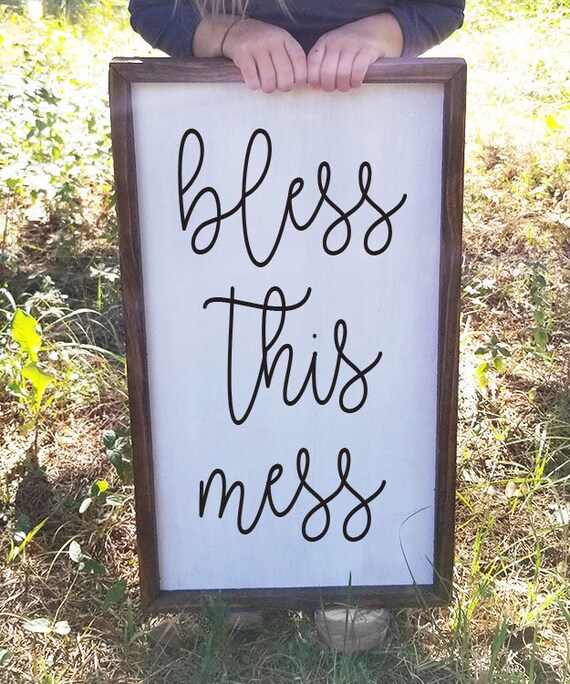 Bless This Mess Farmhouse Sign Framed Wood Sign Blessed Sign Etsy
